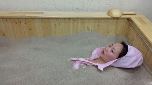 3、祛湿强健身体,调节亚健康,克服病邪,是没有淡旺季之分的 有人会觉得夏天躺热沙会难受,要是明白沙疗原理的人就会知道,夏季沙疗不仅不会感到难受,沙疗后还会感到清爽舒畅。因为沙疗中的矿物质能够释放大量负离子,负离子是舒缓神经,放松心情的元素,能够净化人体内部环境,使我们身体中造成萎靡四肢,无力等亚健康问题的正离子,因此即便是躺在加热的沙疗床中,也不会感到胸闷。